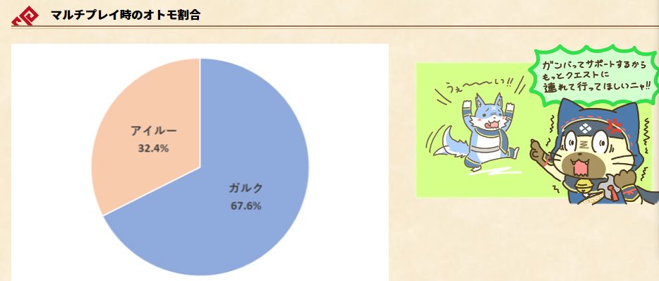 《怪物猎人:崛起》官方今天(9月27日)公开了他们最新统计的数据,新的数据展示了截止至8月份的游戏的各项数据。根据数据现实,有超过半数的玩家在多种狩猎任务中依然喜欢孤狼作战,而多人游戏时狗子的携带比例大幅高于艾露猫。