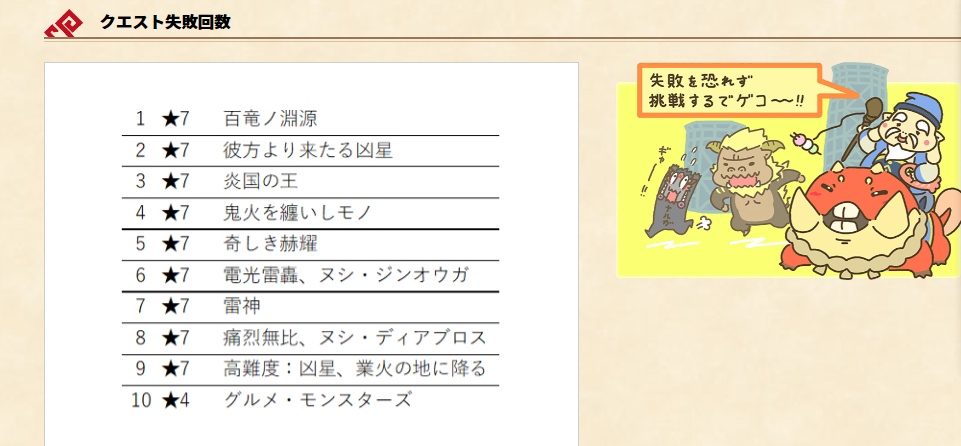 任务失败次数排名:7星级高难连续狩猎任务“百龙渊源”占据第一位。