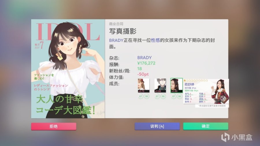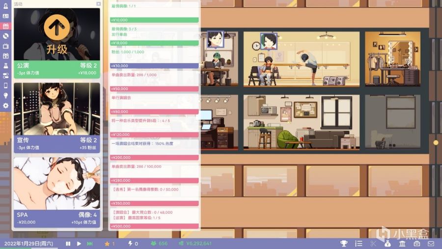 既然说是大战,在本作中的发展自然也不是顺风顺水,如果不知道前期如何开局很容易和笔者一样崩盘。本作来钱的方式很多,首先是每日可以进行的公演,不过这会扣除偶像一定量的体力,但是不多。而合同的收入更多,扣除的体力也如此,在建立休息室前,可以暂时先不考虑。