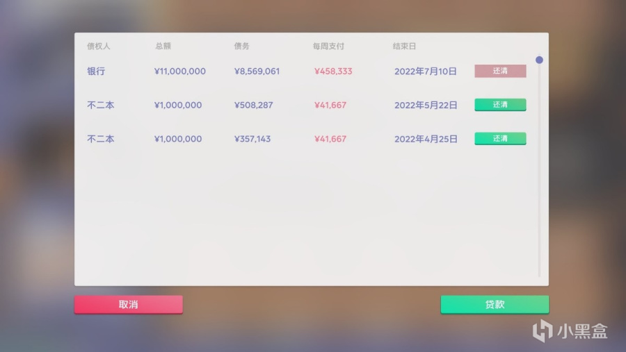 而现在开局也不能像当初那样给偶像无后果工资调到1了,路灯上各位经理人的绞索松了几分,开局却更加严苛了几分。假如挥霍无度,入不敷出了,也可以选择找你老板借钱,反正他的借款是无息贷款,不过每个影响力阶段能借的总金额是有限的,而且也得完成他的任务才能继续借钱。
