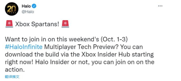 《光环》官方推特宣布《光环:无限》多人游戏技术预览测试将对所有玩家开放,测试时间为10月1日至3日。