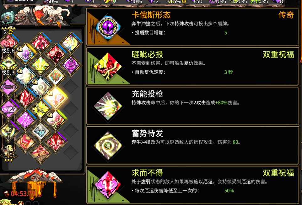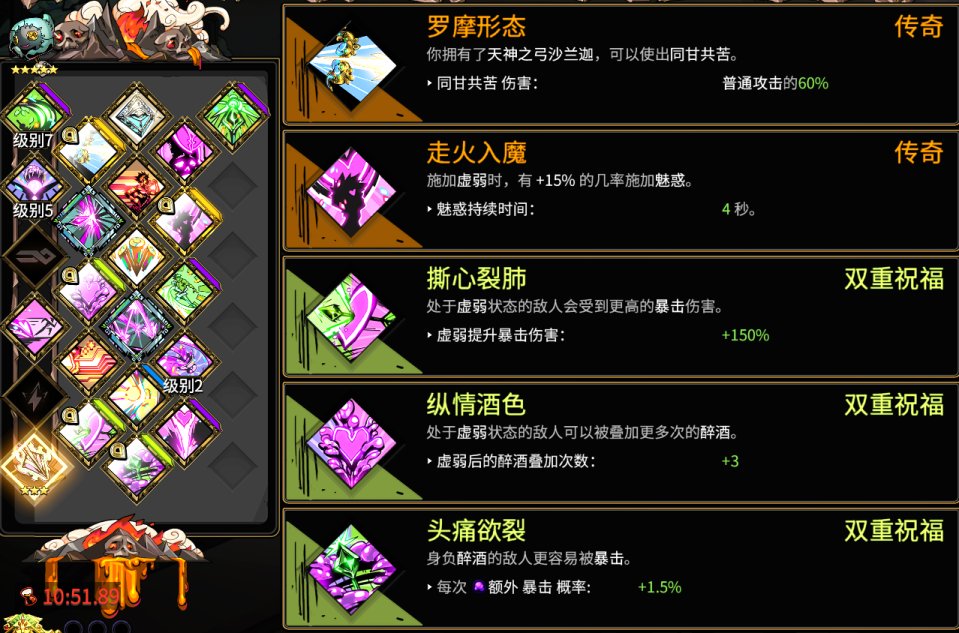 3.在第一关拿到四神祝福后,在第二关携带爱神信物强行刷出爱神祝福。当然这样做也是有代价的,会概率激活事件 两个神闹矛盾,导致不刷新双重祝福。在我拿到爱特双重时,这个事件才结束,还真就是“临别赠礼”,导致我双重祝福也刷新不出来。