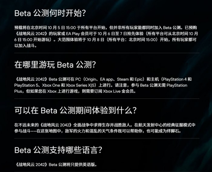 在Xbox平台进行BETA测试的玩家将需要Xbox Live金会员,而在索尼PlayStation平台,不需要PS Plus会员。
