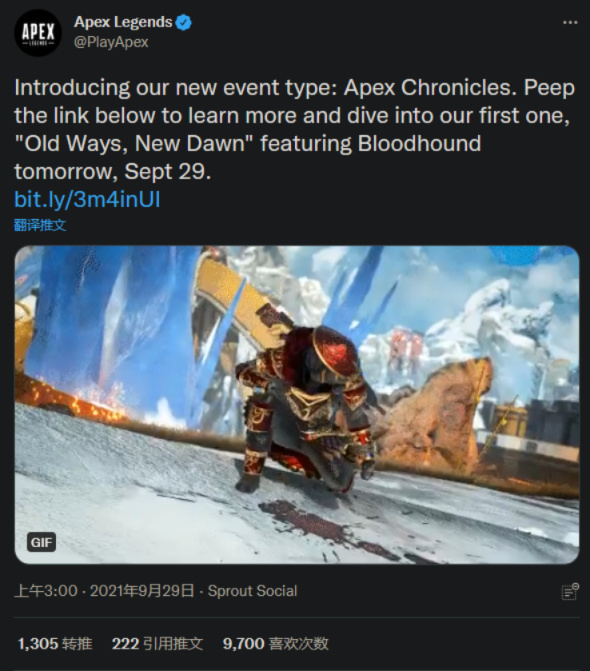 《Apex英雄》官推宣布,游戏将于今天加入全新活动模式“Apex 编年史”。第一个“编年史”活动将以角色寻血猎犬为主题,命名为“旧道路,新黎明(Old Ways, New Dawn)”。