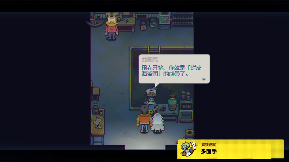 这个成就我个人是到第七章就解锁了。推测是游戏流程中的“挖掘人”、“赶猪人”、“研究员”、“演员”、“海盗团成员”