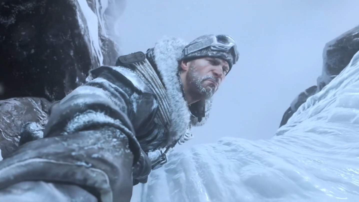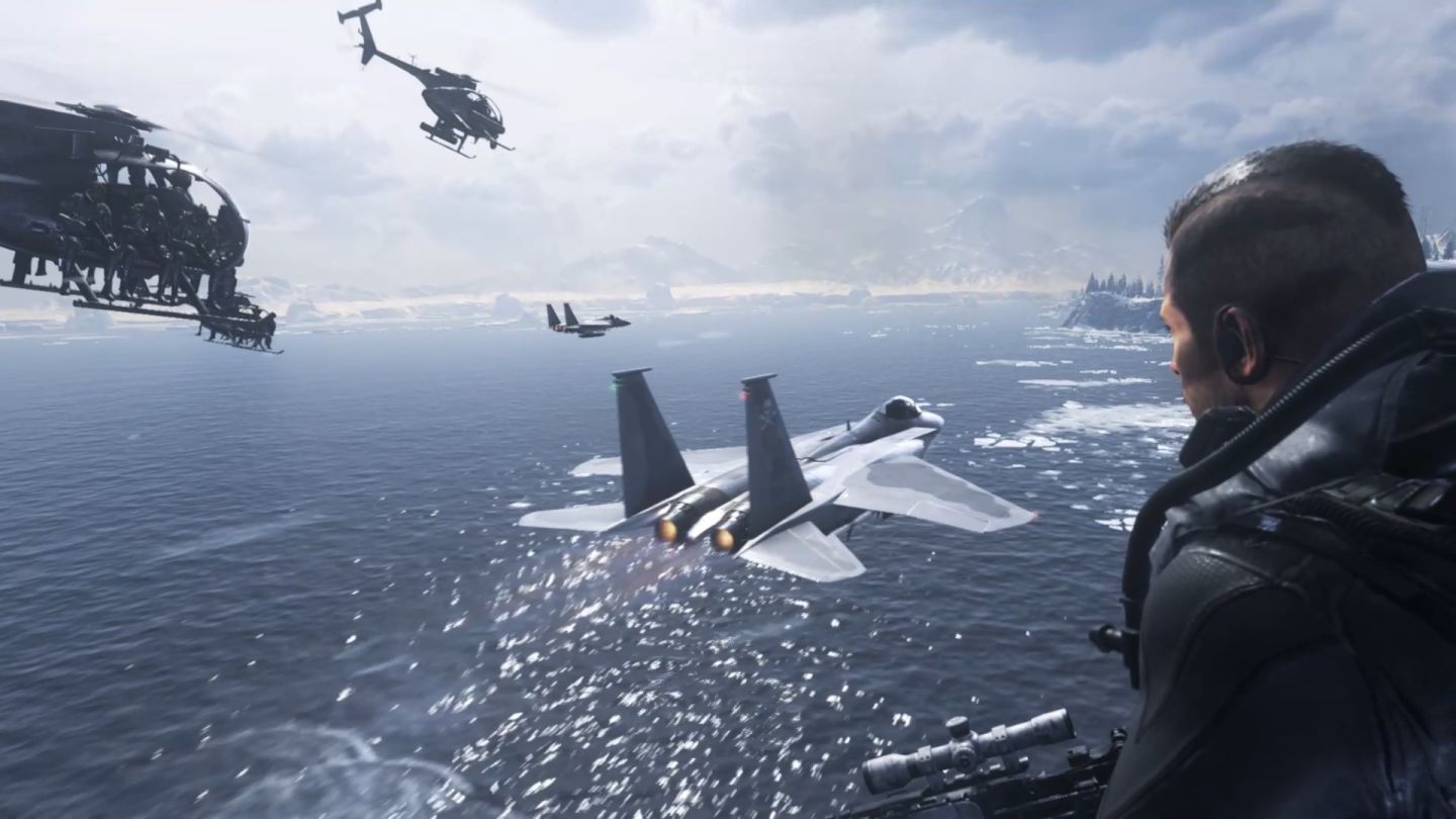 “巅峰战士”关卡:雪山题材配合隐秘行动,游玩起来真的是相当带感。在肥皂的指挥下借助暴风雪的遮掩潜入机场,达成目标并杀出重围后,开着雪橇车飞跃山崖逃之夭夭。紧张、爽快、舒畅,玩家的感受相当丰富却又恰到好处,不得不让人佩服IW的游戏节奏。其中,电影化过场的优秀安排让玩家的体验更是一层楼:无论是雪山失足被肥皂一把抓住,还是飞越山崖时给出的慢镜头,都让玩家能够更好的感受游戏的节奏爆点。