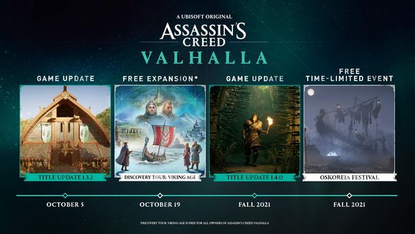 近日,育碧公开了《刺客信条:英灵殿》在10月至2021年末的更新计划路线,其中包括了将在10月5日更新的1.3.2版本、在10月19日上线的免费拓展包「发现之旅:维京时代」。随后的是本作在年内将上线的1.4.0版本以及全新限时活动。