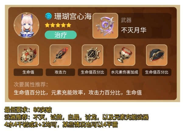 配队思路:双岩或3岩保证充能,双火加攻,双冰加暴击。