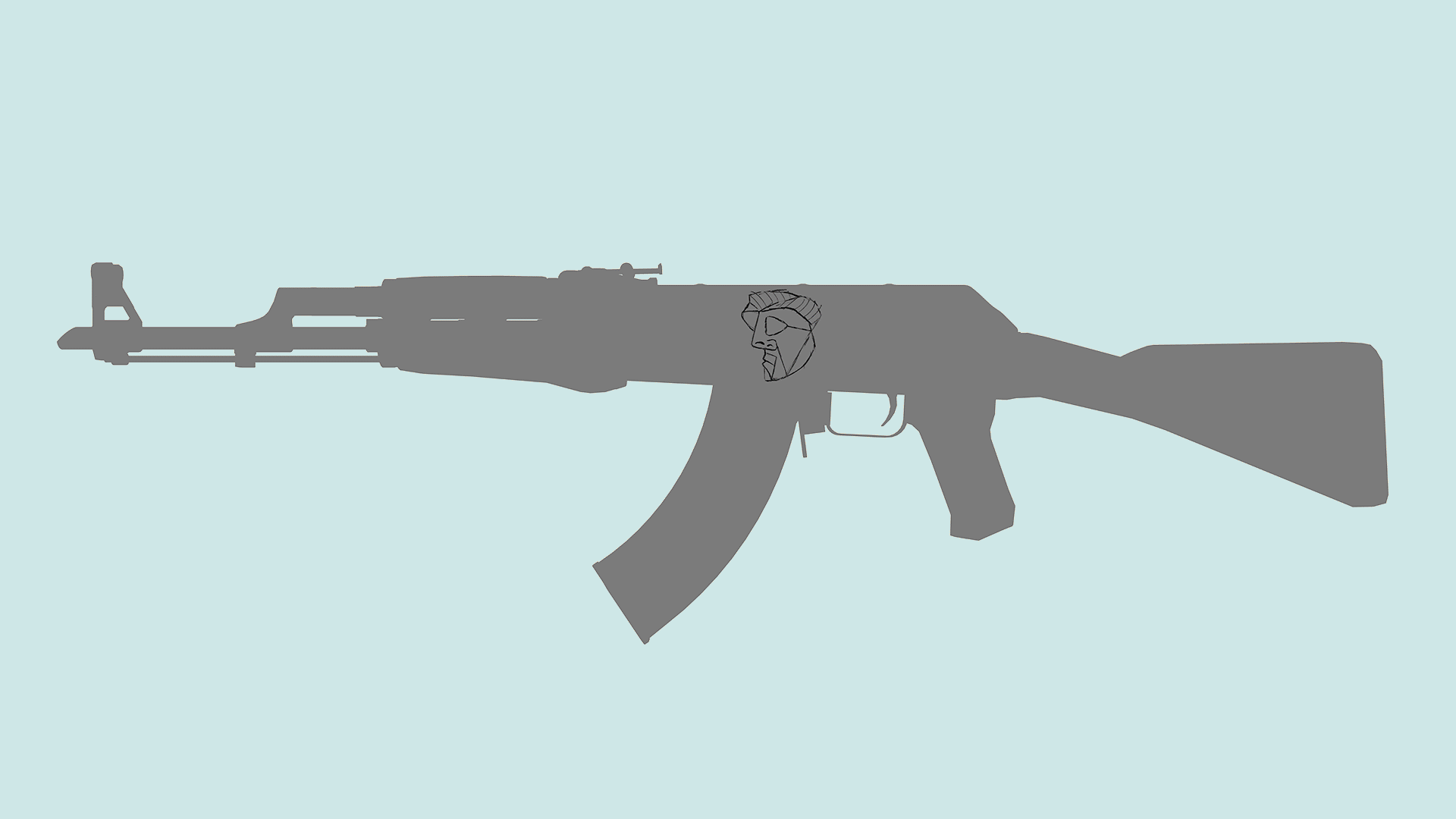 枪身上的图案也并非直接拷贝使用,而是作者自己绘制,并根据不同的武器设计了不同的图案。AK上是作者的画作《精锐分子在A大》。