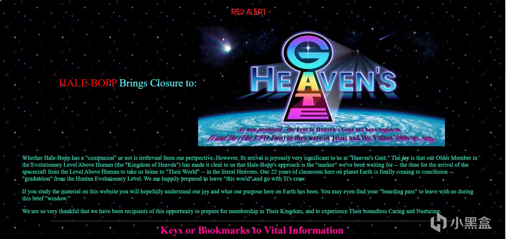 该网站以国外邪教“天堂之门”的网站为蓝本制作。