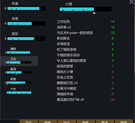 加入了卫生系统,提高了原版难度。另外还加了个洗衣机可以让亡者的衣服恢复。