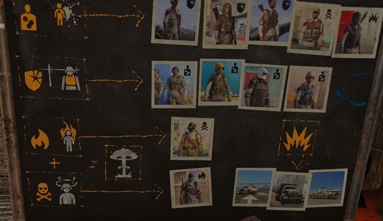 由于游戏本身敌方有着不同的兵种,这时候我们经常会陷入不知道用什么来打。工作台旁边的小面板,帮我们完美解决了这一点。我们在这块面板上能清晰的看到敌人的各种兵种,以及各种兵种用什么子弹或者什么方法伤害更高。