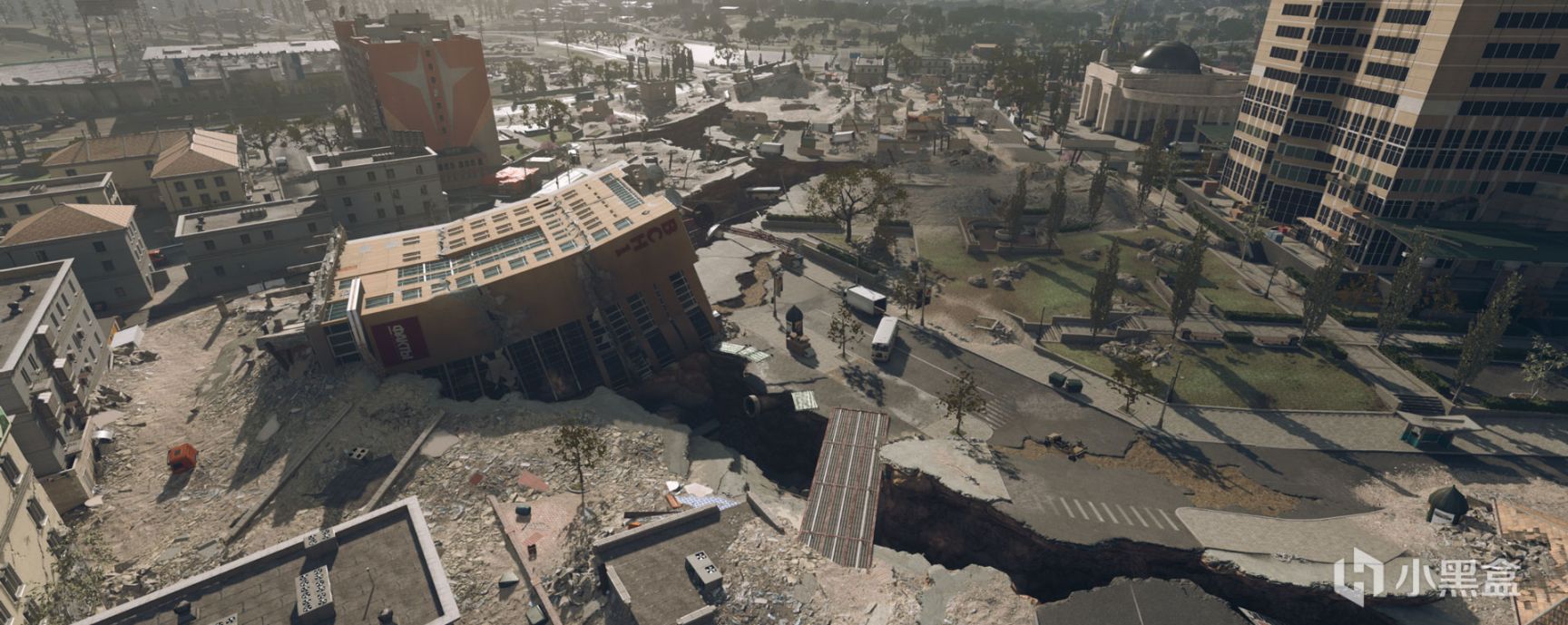 根据之前的官方发布的剧情视频,可知的是阿德勒在与疤奇的洗脑程序精神抵抗的情况下做了一件不为人知的事情,疤奇本身的任务是去拆除这些爆炸物的,但是阿德勒为了破坏柏修斯的计划却引爆了该炸弹摧毁了市中心靠近体育馆这一片区几乎大部分建筑,结合下图红色集装箱的排布位置,可以很清楚看到整个集装箱装置是个环形,加之爆炸引发的地震连锁反应,爆炸性地震对整个佛丹斯克的地面损坏由市中心为中心向地图两侧集装箱装置延伸至雷达阵列区域与海滨大道处都有不同程度的地面裂缝。