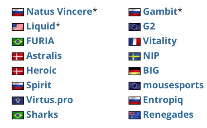 以下为目前已经获得了参加本次Major名额的各大战队(注:*表示获得传奇组名额的战队):