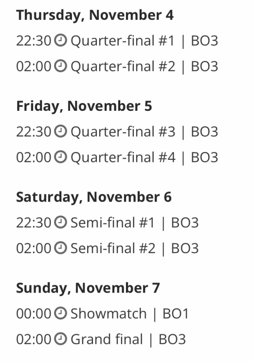 以下为冠军组,即八强淘汰赛阶段的日程安排: