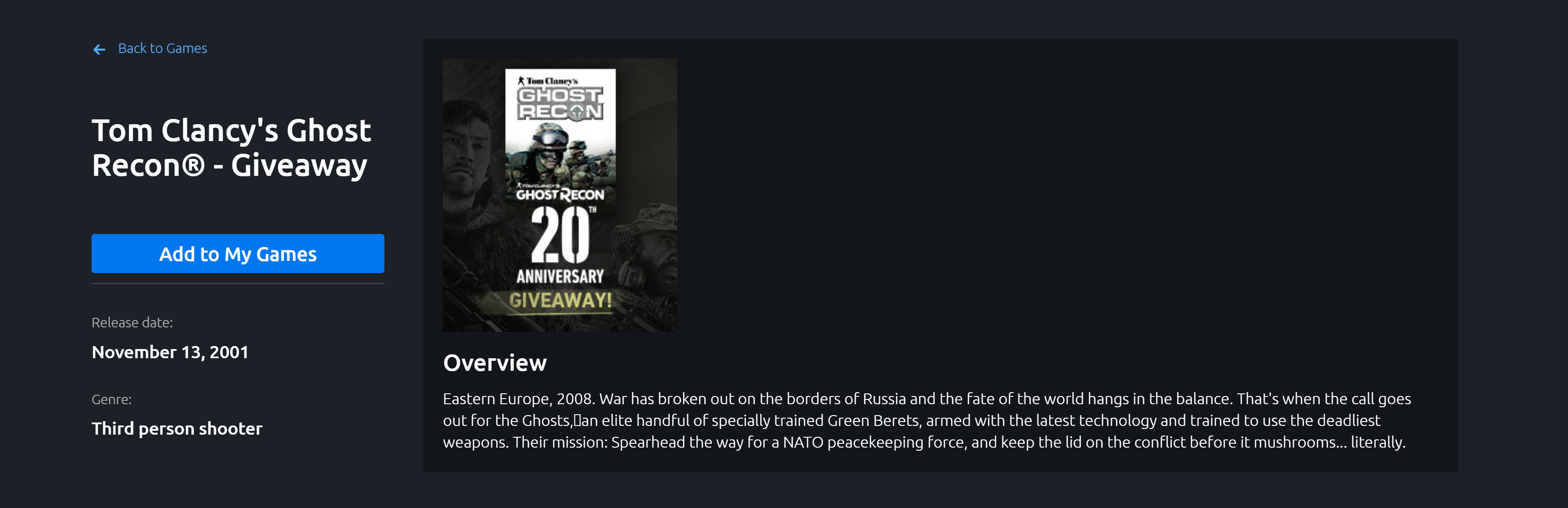 育碧免费领取【幽灵行动1】;