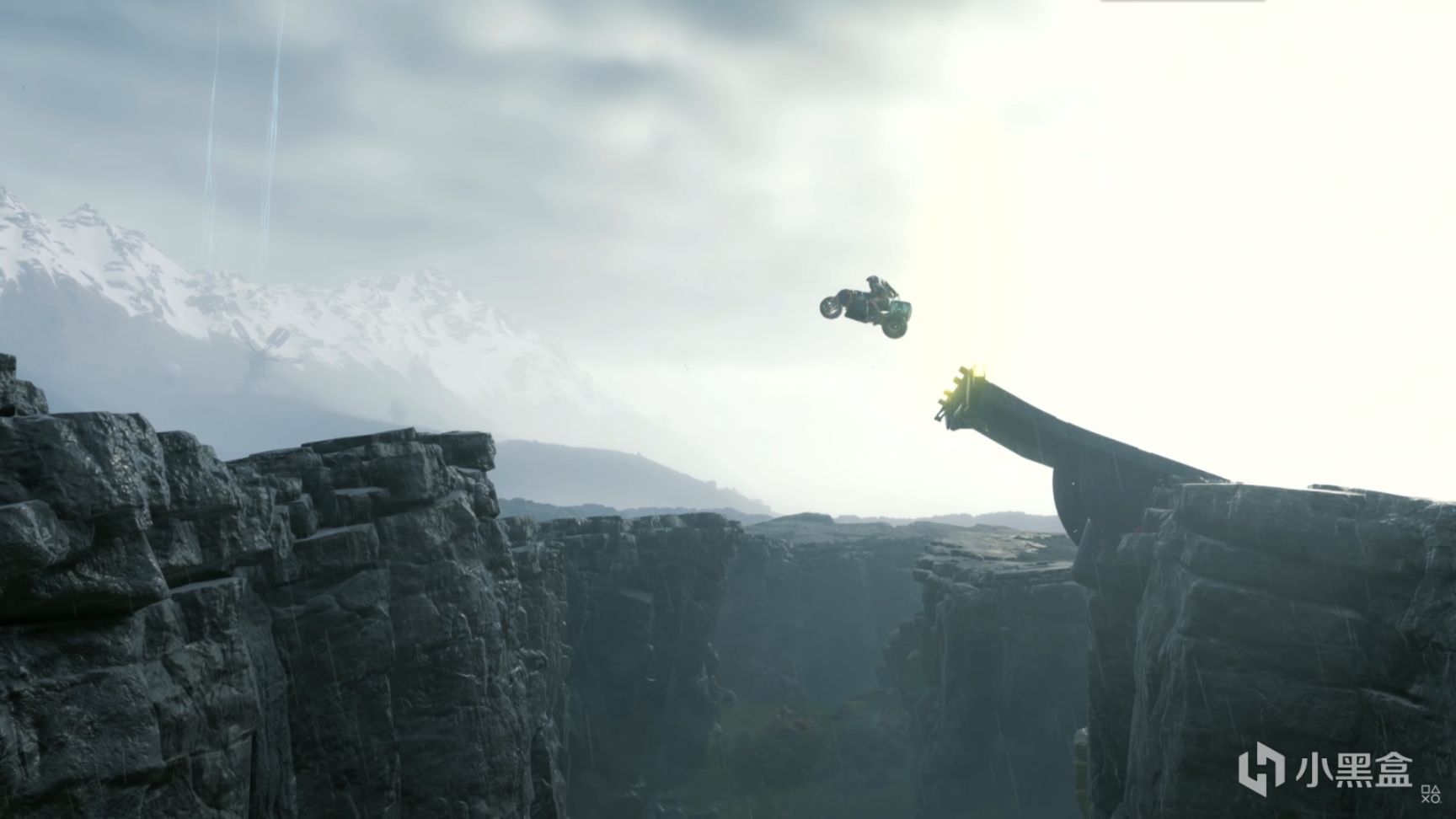 相比于《死亡搁浅》中较为严肃,偶尔出现的一些喜剧元素的内容外,《死亡搁浅 导演剪辑版》似乎想让玩家们更轻松地体验游戏,从而设置了不少降低游戏难度的新内容,比如说全新的跳跃滑坡,你可以骑着摩托在上面做一些帅气的动作,或者是货物弹射器,它可以帮助你更容易地让货物在两地之间快速移动,而不用自己跑来跑去,你甚至可以叫上机器人,坐在它的身上,放下手柄,边看风景边送货,好不惬意。