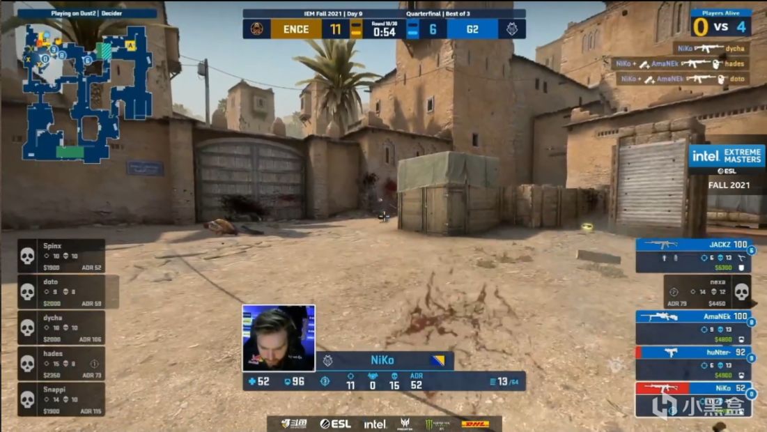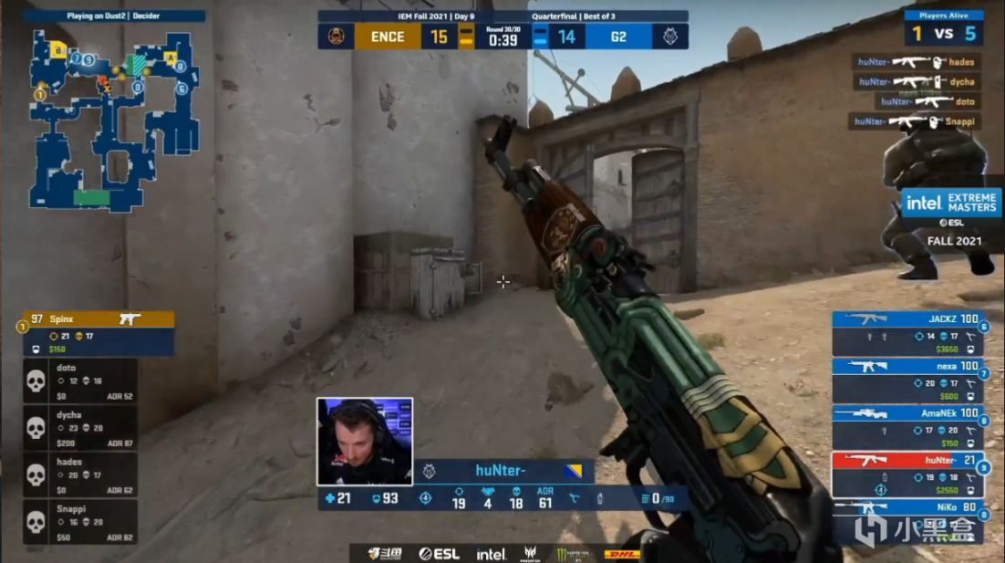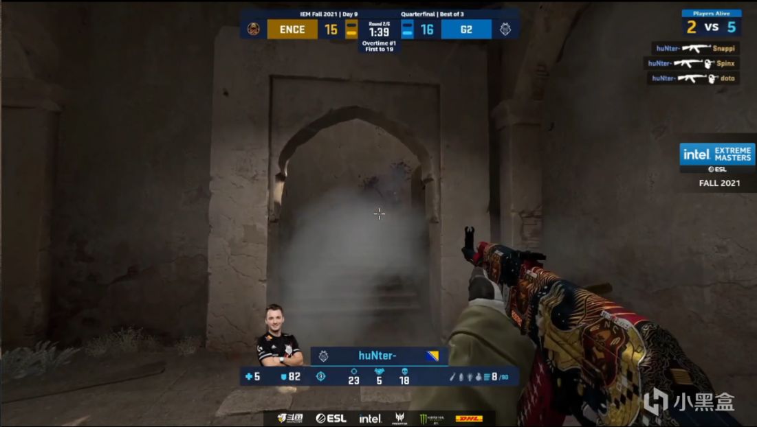 二十九回合dycha小道走位不慎被Amanek大狙架住,随后ENCE夹B被nexa车位接住,双杀守住包点,常规时间最后一分ENCE没钱,三十回合ENCEB点假爆展开烟夹B但是没有骗到B外的hunter,他扫射转移拿下4杀帮队伍将比赛拖进加时。
