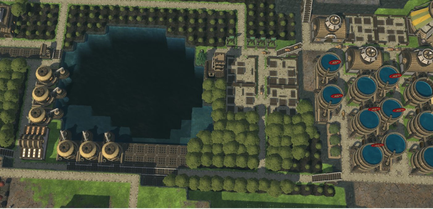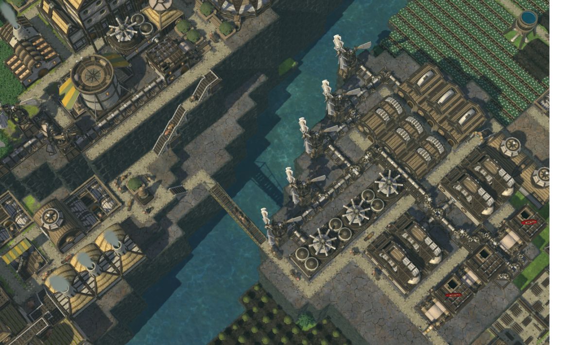 水库,大坝的建造,这是游戏有趣并且重要的一步生存手段,无论使用哪一种族,都需要建水库,大坝。不建?那你肯定很难玩到后期。我建议还是尽量根据地形选择如何修建,如果有离河流近的大坑,修水库是不二之选。我更倾向去修水库,有安全感,并且就算没有合适地形,也可以只用一个单位的高度差,用较大的面积土地储水。大坝建造主要是堵水,这就需要足够的深度(或者堆高),但这都没有水库省事。建造这些都需要炸药改造地形,配合闸口的使用才能完成。还有尽量让水流动起来,可以设置进水口和出水口,不然水一直停在那里排不出去也可能发生洪水,另外也是为了美观。过程可能比较枯燥,但是建成后那种不愁水,不愁没水灌溉作物,真的很爽。这有这样才有接下来的放心建造房屋和设计更好看的建筑。