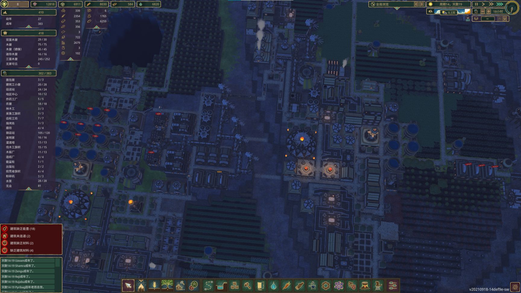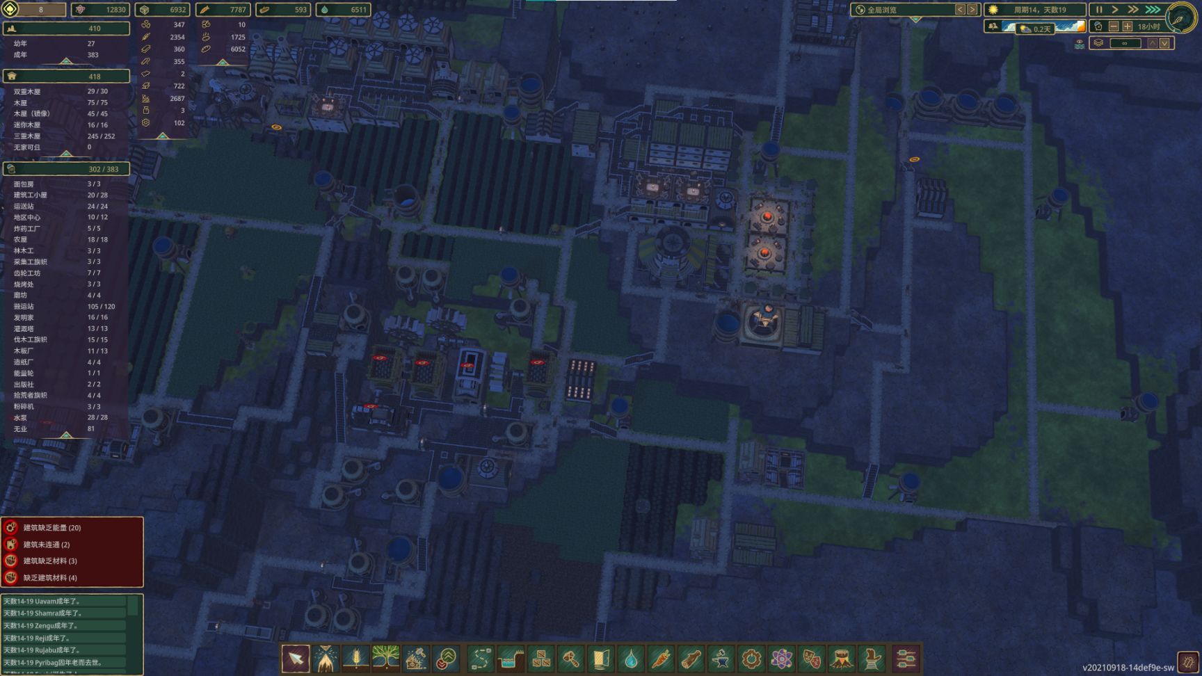 前期的自带资源收集后,建造林木站(负责玩家设定区域的树木种植)尽量种植产量更多的树,但要在保证一定的生存前提下。树木的生长周期长没关系,这只会延迟发展,但不耽误生存,一旦树木成熟就会迎来一个飞速的发展期。原木可以满足少部分的建筑需求,主要是要建造木板厂生产木板,满足进一步的需要。而还需要建造齿轮厂利用木板生产齿轮。还有收集废铁,这些废铁一般距离初始地区比较远,然而地区中心就可能涉及不到那片区域,这就需要在创建一个地区中心管理这片区域,但是需要迁移人和物资满足这片区域生活。获取到废铁后也有专门的建筑生产钢板用于造桥。保证能量的供应和原木的产出,快速的发展不是问题。
