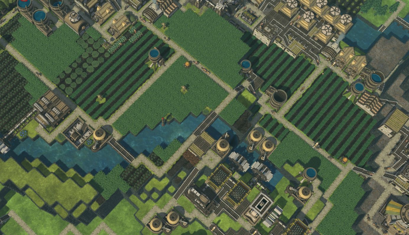 土豆生长期长一点,并且需要烧烤处这一建筑进行加工成烤土豆才可以获得更高的营养食品(高级的食材增长康乐度)。小麦生长期更长,这就需要保证在旱季不会枯死,所以要保证水的灌溉,条件要求高。并且小麦也不能直接食用,需要磨坊加工成面粉,然后还需要面包房加工成面包才可以获得最终产品,并且磨坊需要能量供应。完成面包的流程是最麻烦的也是最高营养的。