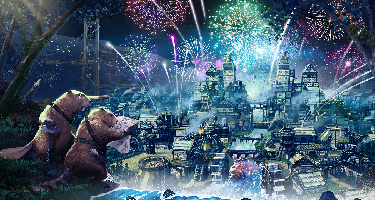 游戏以人类灭绝后,一群海狸在人类世界建造家园为背景(和人类没毛关系)。整体的建筑风格偏向欧洲中世纪的那种,很有一番风味。海狸的形象也偏可爱,忙碌起来也很有趣。