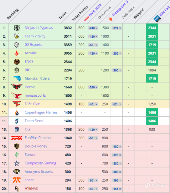 而FaZe在此前的比赛中战胜OG和BIG拿到了第九名的1250分,加上之前的分数RMR总积分来到了1498分,已经足够他们参加今年的Major赛事。