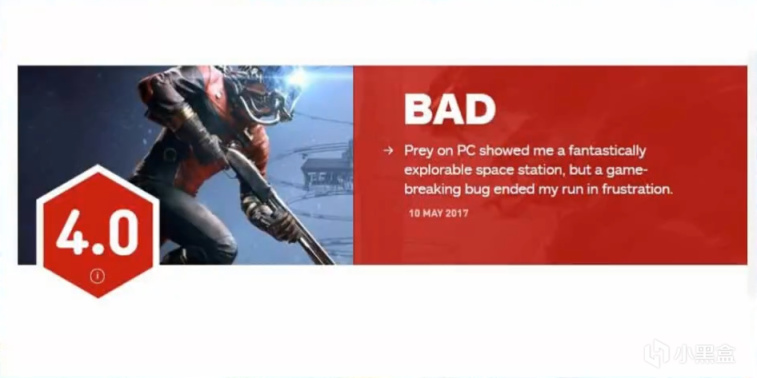 虽然IGN编辑在游戏BUG修复过后最终将评分修改成了8分,但先前4分的评价早已被大多数人记住,大概也影响了一些«掠食»的销售前景。