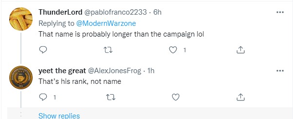 网友A吐槽:他的名字可能比整个战役都要长,lol。