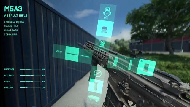 其次,是武器配件的灵活切换。能够在激烈的交战中,不必忍受重新部署的烦闷,随时随地且随心所欲地为武器加装,适合当前战场节奏的装备,绝对一件能够令玩家兴奋的事情,除此之外,游戏在配件改装的UI设计方面,极富科幻感,不知不觉中就会将人带入到一种未来战争的氛围中去。