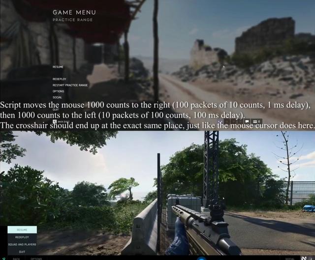 在利用脚本控制鼠标右移1000下,再左移1000下后,你会惊喜地发现,准星无法归中。