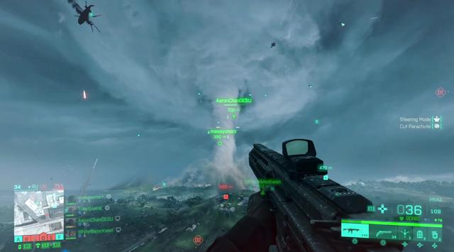 首先,最令人印象深刻的,是2042的天气系统。纵然不提龙卷风那千军万马的气魄。单就它降临前黑云压城城欲摧的临场感,就足以让战场中的玩家拥有前所未有的视觉体验。
