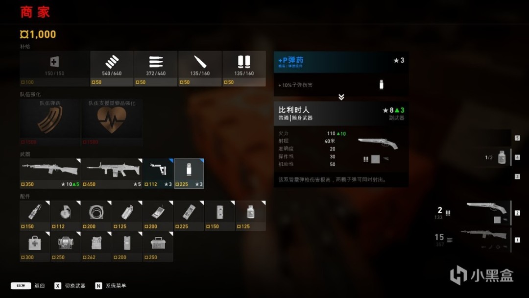 在本作中,每关从安全屋出发时,可以在商店用金币购买武器、配件、强化、补给等等,这也是除了开箱外这些东西的主要来源。自然,也可以获得几次免费的治疗,这在连战时还是非常重要的。当然,玩家自然也可以使用道具回血,或者在被击倒后由队友救助——医生角色在这方面自然也是有加成的。
