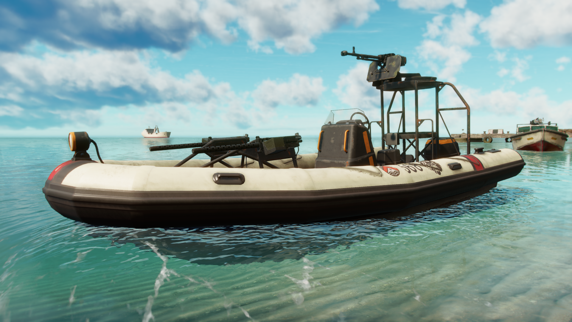 国防军所使用的硬壳充气艇,其搭载了数挺固定机枪,以追踪和击杀水上目标。