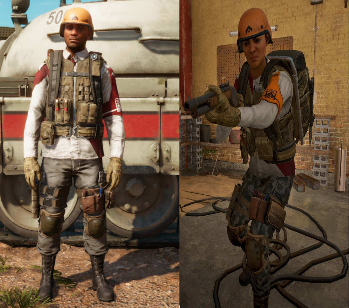 特种部队狙击手身着灰色迷彩制服,但身上的吉利服伪装极少。他们穿着红色的防弹背心,所有的特种部队狙击手都蒙着面。