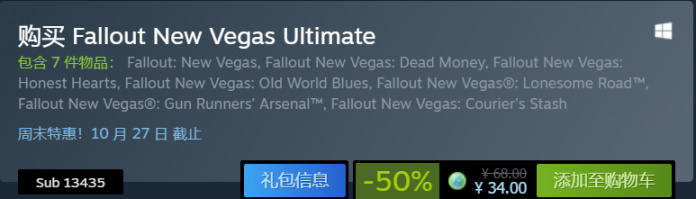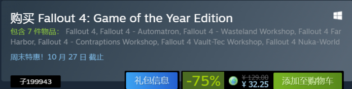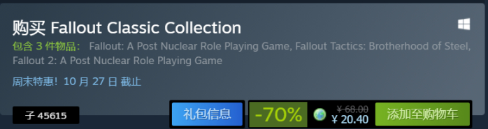 今天是《辐射》系列打折,虽然辐射4新史低,但是捆绑包还是史低,建议还是直接入捆绑包吧。