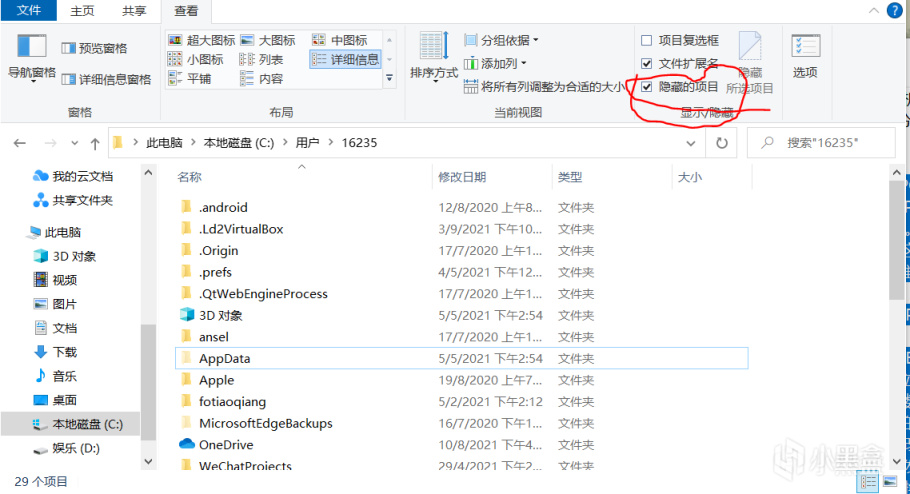 2、大部分人不会换XBOX游戏的存档不是因为找不到存档资源,而是找不到存档位置,这里提供一个大多数Xbox游戏的存档位置:C:\Users\用户名\APPData\Local\Packages 在这个路径里面的那一堆文件夹就是各个游戏的存档文件夹。(如果看不到APPData这个文件夹的话请在查看里面勾选隐藏的项目)