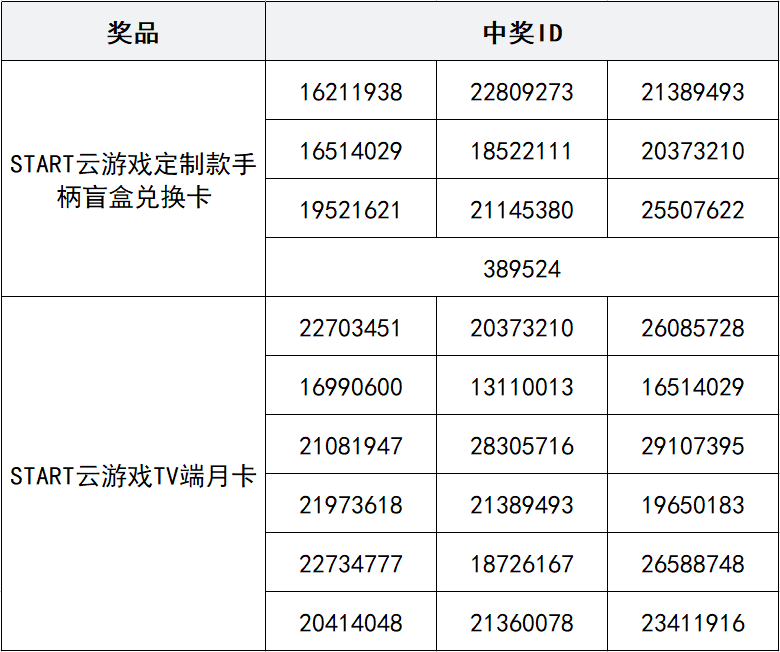一等奖:START云游戏定制款手柄盲盒兑换卡*10