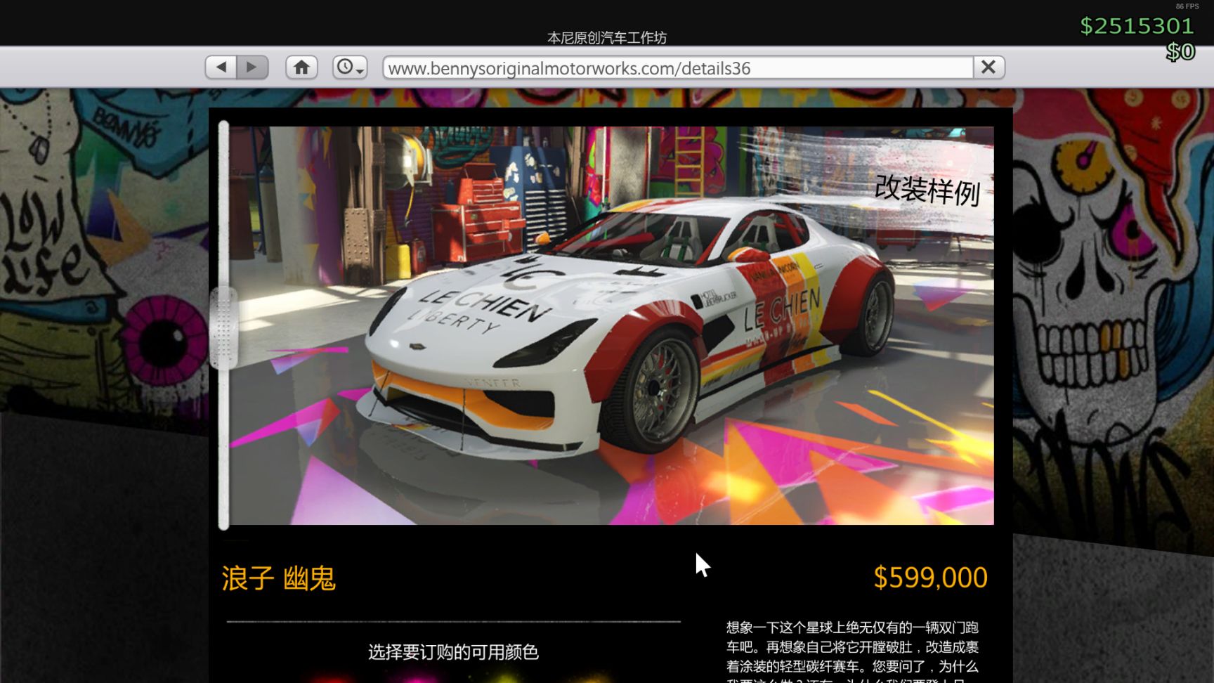 游戏内本尼原创汽车工坊获得(需升级)