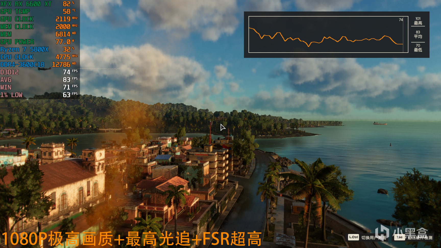 这款游戏的门槛其实很低,加上有AMD深度合作的关系优化就更好了,就极高画质而言,无论是1080P还是2K分辨率都能很好满足完美流畅标准,至于开启光追之后,建议可以搭配FSR超高质量模式,这样1080P就能够达到平均78fps,不过2K分辨率稍微会有些压力,只是实际上RX 6600最佳搭配也不是2K显示器。
