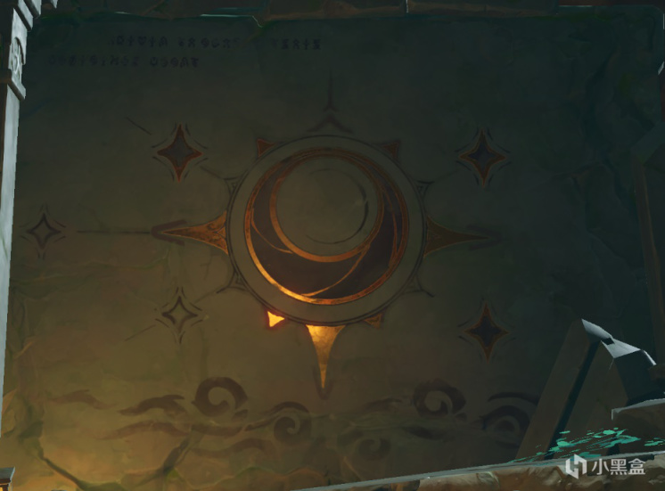 如米哈游所愿,我确实无法直接翻译。但是最后一行的前三个字母是”est“,在拉丁语有“就是”的意思,然后利用我们原学的传统艺能,找线索。线索很明显,壁画左上角的图案几乎让我们不得不去怀疑它,不知道各位对这个图案有什么印象没有,它在蒙德雪山芬德尼尔遗迹的密室中同样有出现过,图案代表天空岛。