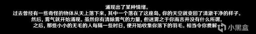 迷雾已散,鹤观没有任何留念的事物了,无论是神秘的文明还是雷鸟与阿瑠的悲剧那都已经过去了,现在旅行者还必须继续正视前方。没错,带着这片羽毛走向世界吧。