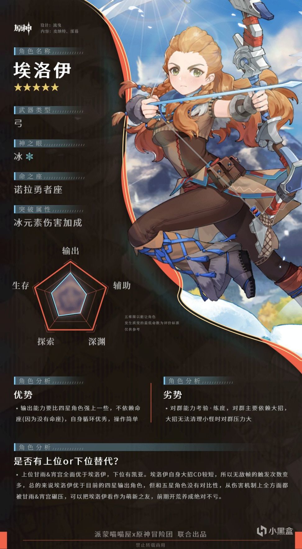 虽说埃洛伊作为五星角色,输出上限比其他四星角色输出要强上一些,但和其他五星角色对比还是输出逊色不少,如果你是萌新或者是前期开荒的玩家还是很值得培养的,大招只需要40充能倍率也不低,后期当个副C也是不亏的。如果是养老玩家想多一个冰系速切大招流也是很推荐养成,只需要升级大招即可,但是资源短缺的玩家就暂时不推荐养成了,等后期资源充足在进行培养。