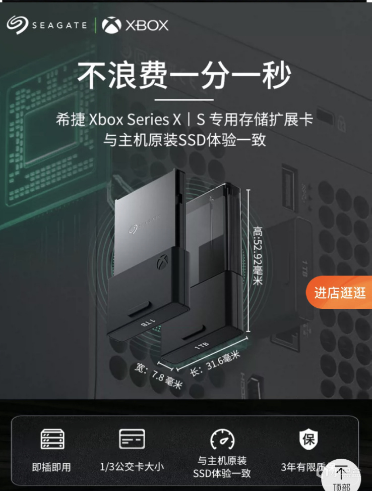 Xbox的硬盘扩容简单无脑,直接一张希捷与Xbox合作的1tb扩展卡,插在主机背后