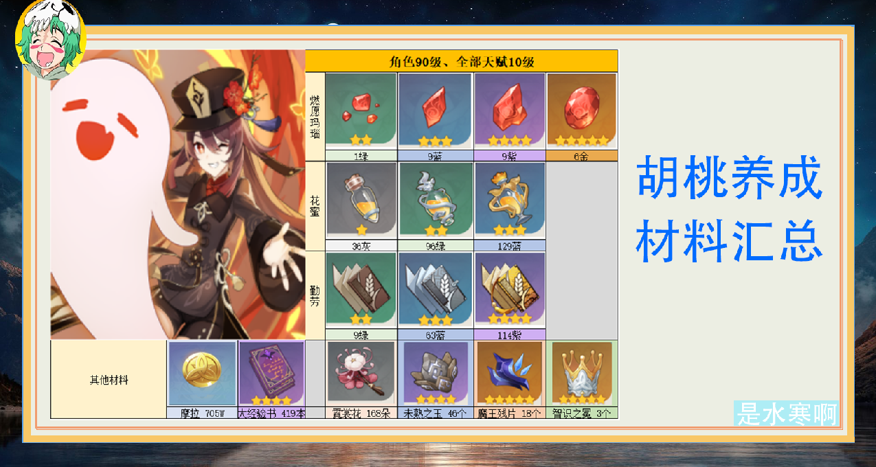 胡桃90级,技能拉满所需材料