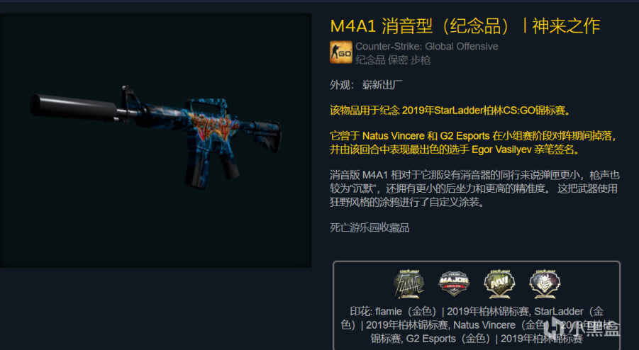 开纪念包获取的纪念品皮肤,皮肤上的贴纸如右下角所示(截图来源Steam社区市场)