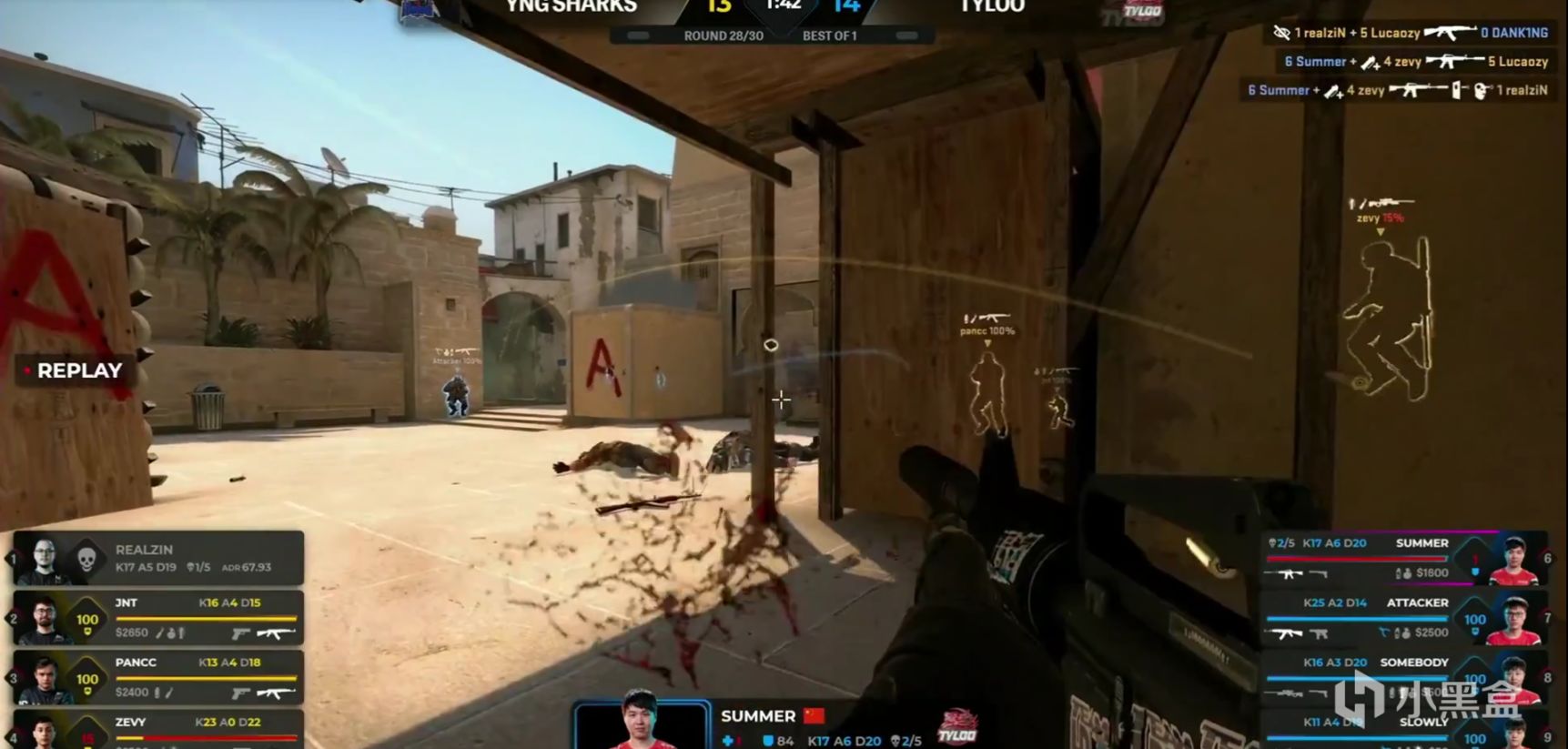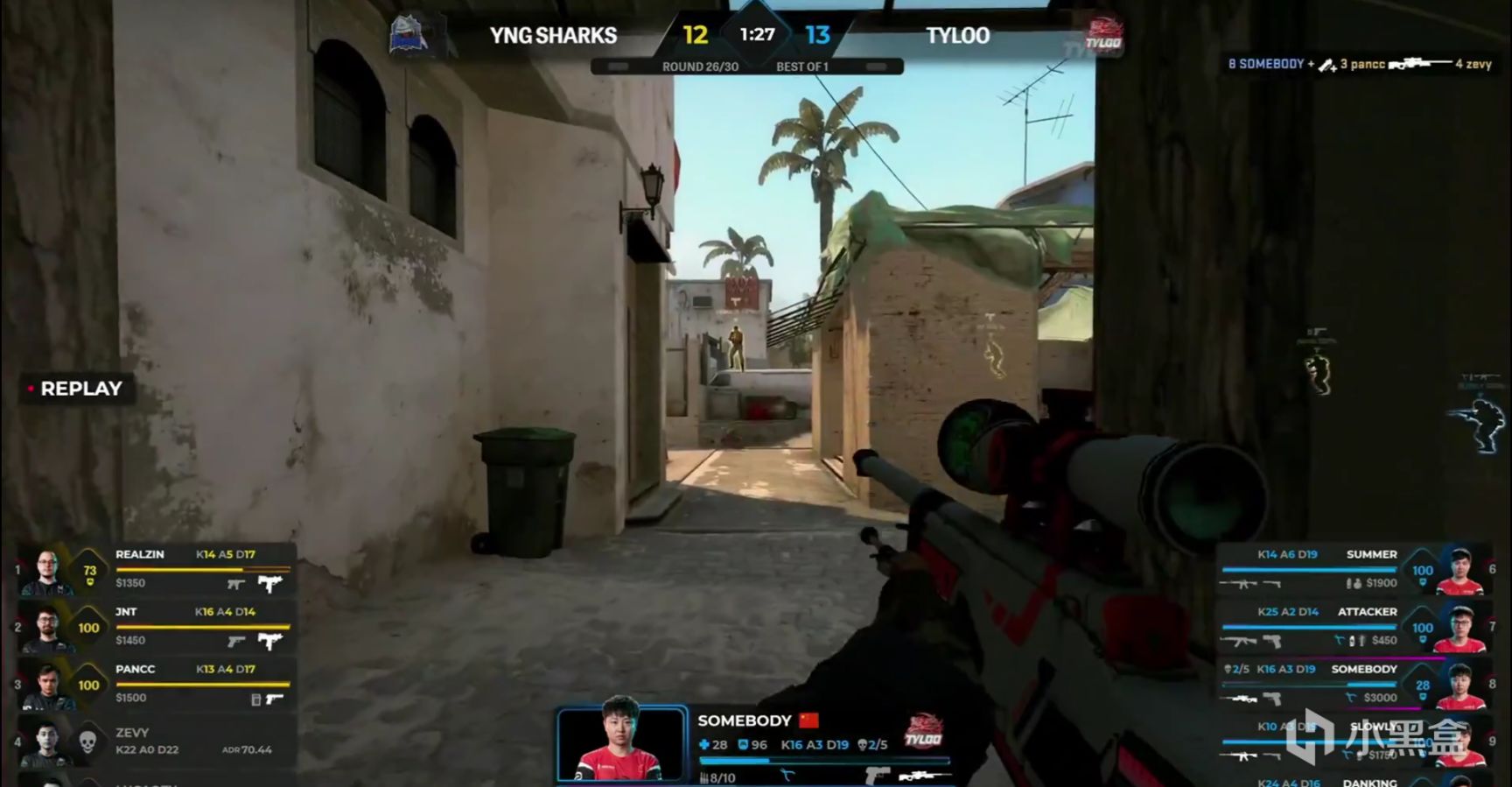 第二十一回合Sharks直接提速进攻a区,Summer和Attacker瞬间白给,somebody警家回防也被截住,TYLOO瞬间进入保枪节奏,12-9。万幸的是TYLOO还有经济强起,Sharks继续贯彻抢占中路的打法,但这种游勇散兵的打法给了TYLOO最好的空间,SLOWLY先打两人,DANK1NG和somebody双狙完成三杀,TYLOO咬住了比分。Sharks经济已经见底仍然强刚出长枪,b区的提速下双方快速进行了人数互换,进入2v2残局,TYLOO的枪法和耐心再次拯救了他们,Sharks被打入eco,比分也被顺势追平,12-12。重新进入长枪局,Sharks控制下中路准备中路夹a,前期人数互换TYLOO吃了大亏,但是Attacker在三明治就像个战神,左右腾挪完成了三杀!次回合somebody大狙双杀,队友回防及时阻止了对方的rush b行为,TYLOO拿到第十四分。