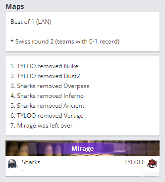 PGL斯德哥尔摩Major一阶段第二轮比赛,在首轮憾负Heroic之后,tyloo图二迎来了自己今日的第二个对手Sharks,面对南美劲旅,TYLOO展现了更好的枪法以及更高的战术素养,最终以16-14的比分战胜了Sharks取得了PGL斯德哥尔摩Major的首胜。
