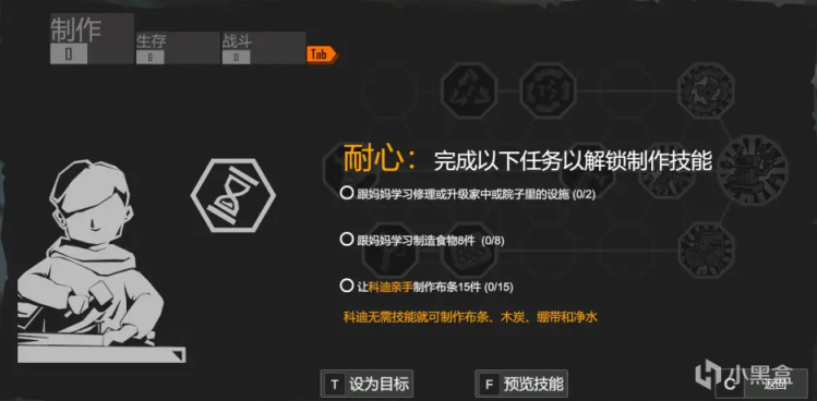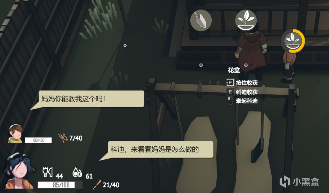 但个人认为,制作组在一些细节可能欠缺一些考虑:比如砍树这件事,玩家砍树和儿子捡树枝是不能同时进行的。这种时候儿子的技能就会显得有些多余。