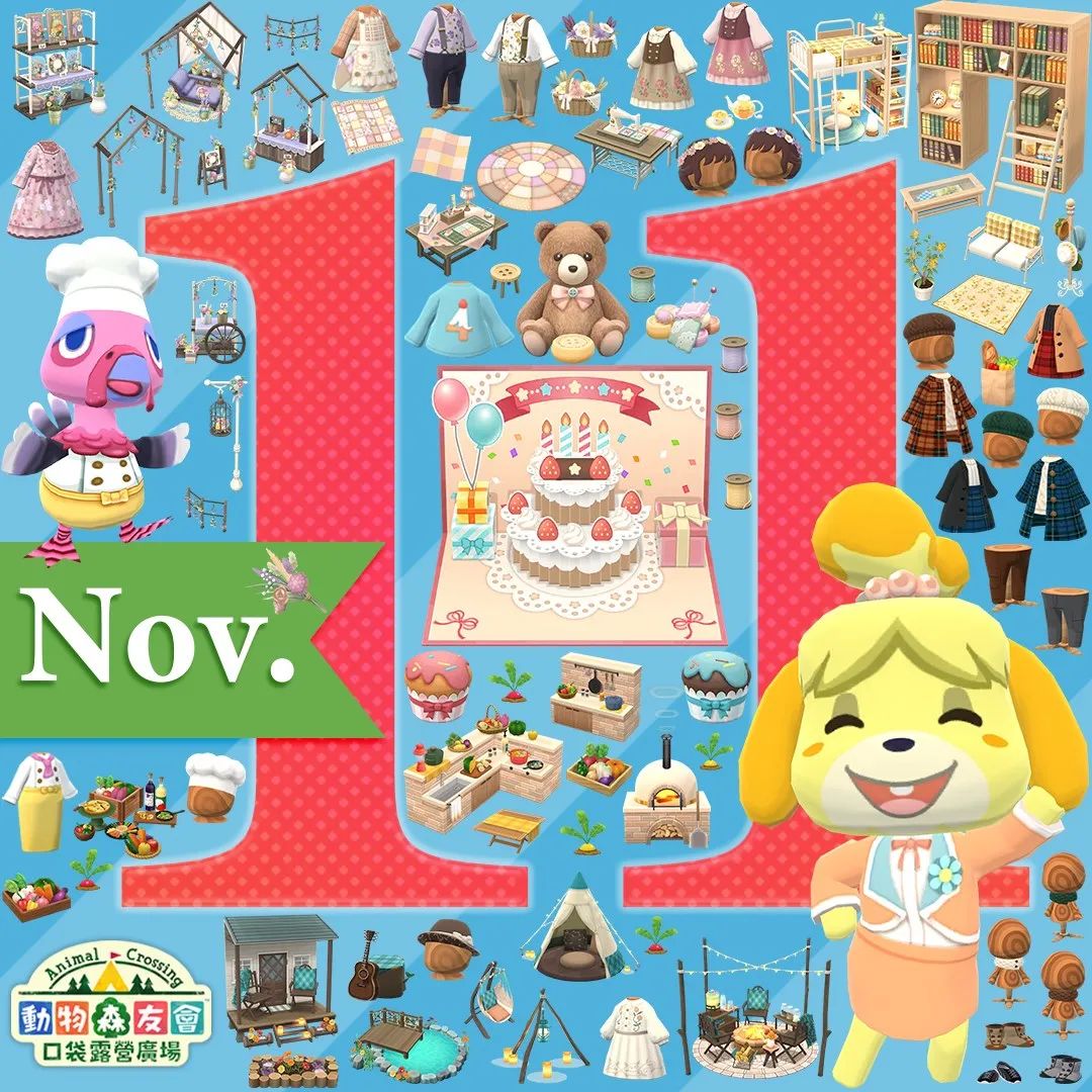 同时《动物森友会 口袋露营广场》11月的手游活动时间,11月主题物品宣传图,今日也已发布。